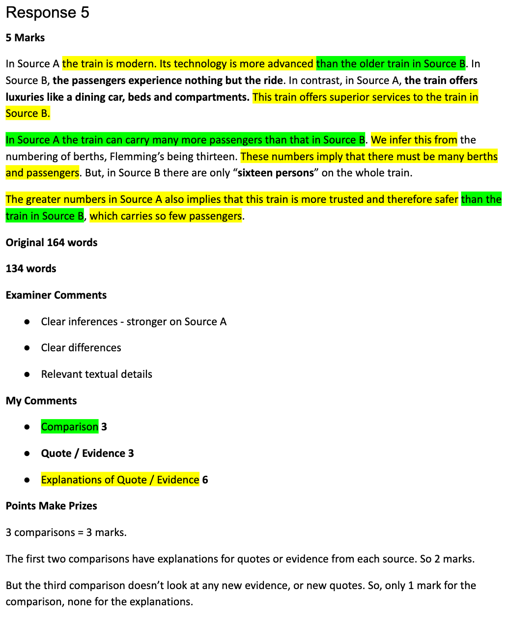 Here’s an example of a 5 mark answer from my exam practice paper and guide to paper 2: